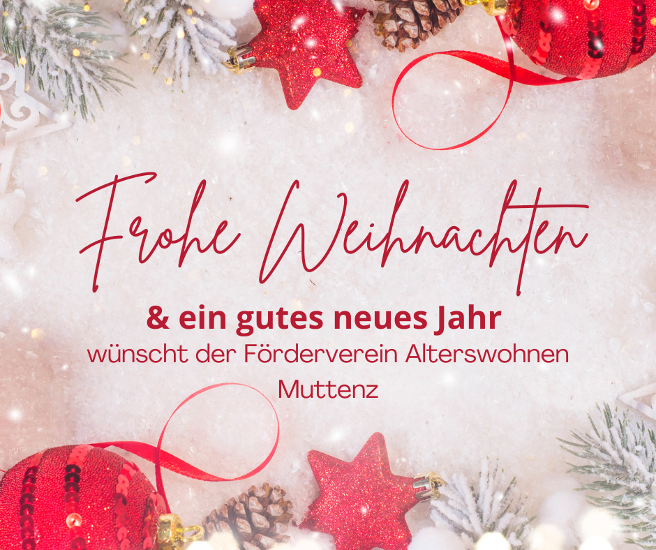 Der Vorstand des Förderverein Stiftung Alterswohnen Muttenz, wünscht seinen Mitgliedern eine besinnliche Weihnachtszeit sowie für das kommende Jahr Zufriedenheit beim Bestreiten des Alltags und vor allem eine robuste Gesundheit.